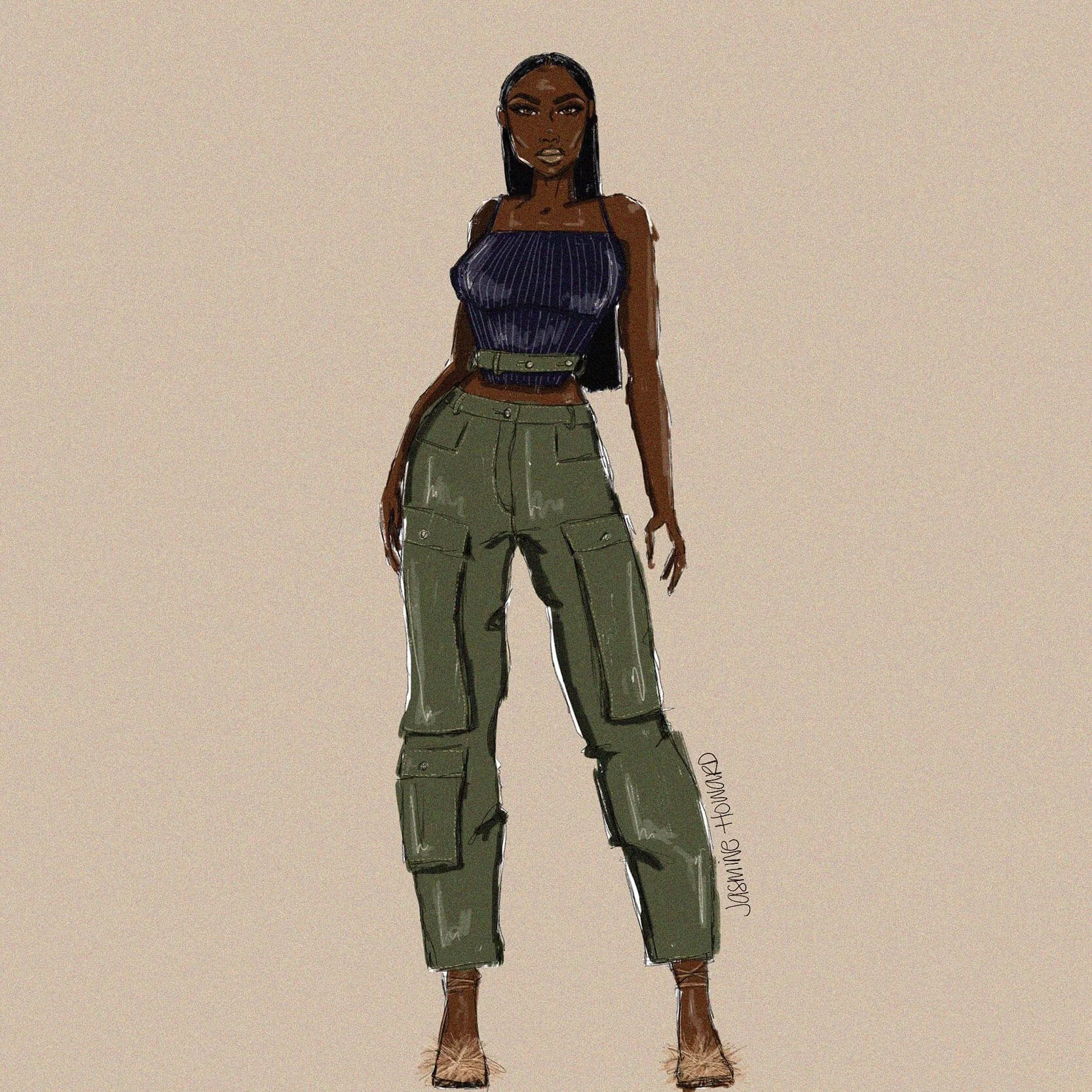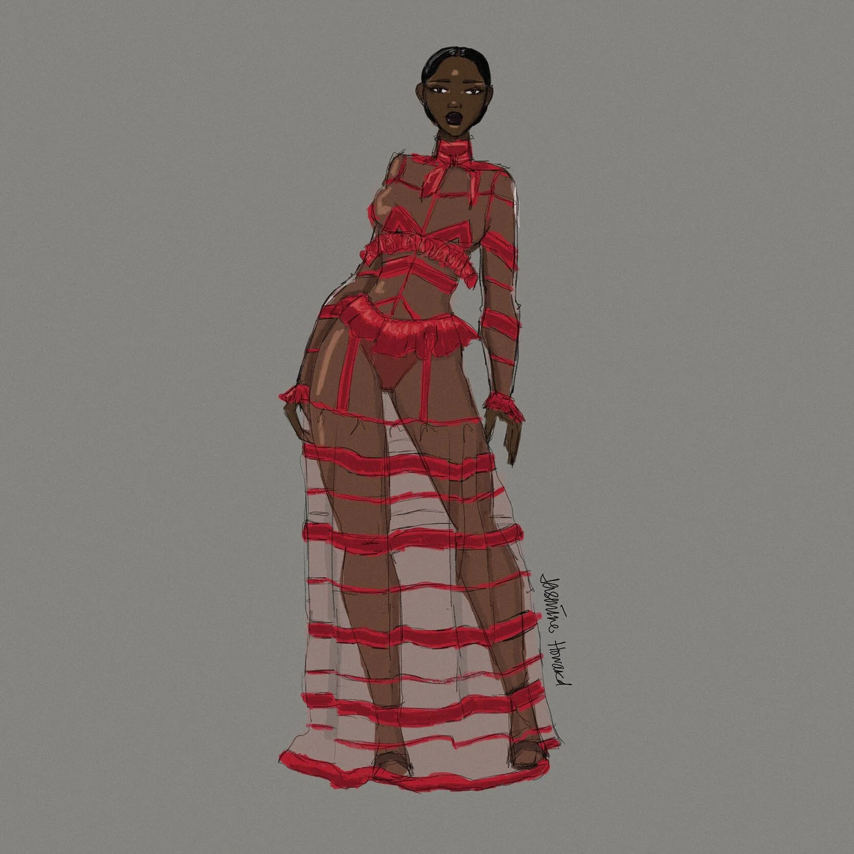 I often use floral imagery as a metaphor for personal evolution (& it's also fitting because my name is... Jasmine). Each flower I paint represents the journey of nurturing oneself, much like planting a seed and watching it bloom. These flowers are often adorned in high fashion garments, merging nature with couture in a way that celebrates boldness, beauty, and identity.