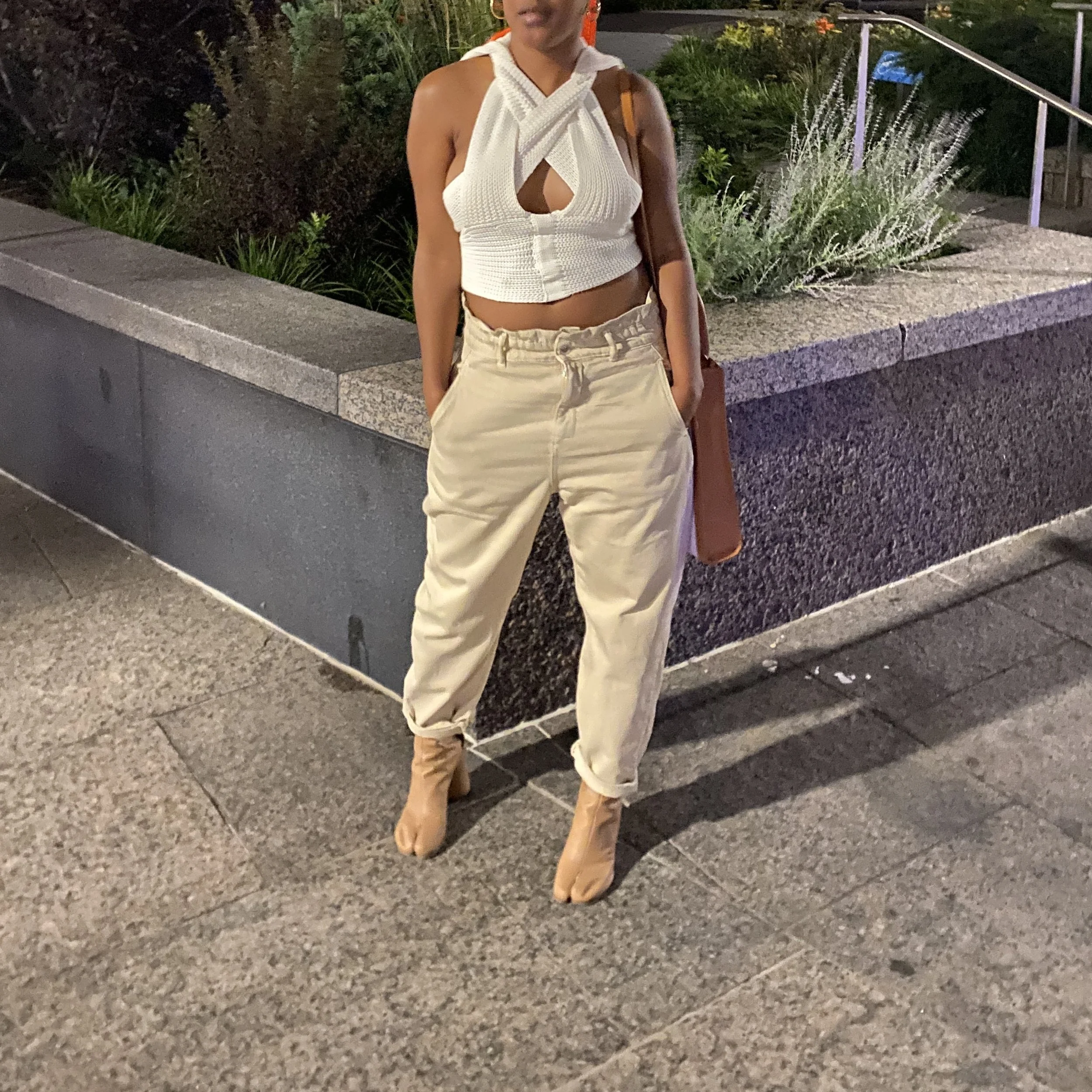 I paired the top with one of my favorite pair of pants. I loved these ruched waisted pants! They literally looked good with everything. The relaxed fit was so perfect because it kept me comfortable, but also still had some sex appeal because it complimented my body shape. They stopped at the ankle, so they looked good cuffed, rolled or straight with sneakers, a boot, etc. I had these in two colors and man… I got my money’s worth, okay! Thanks Zara.