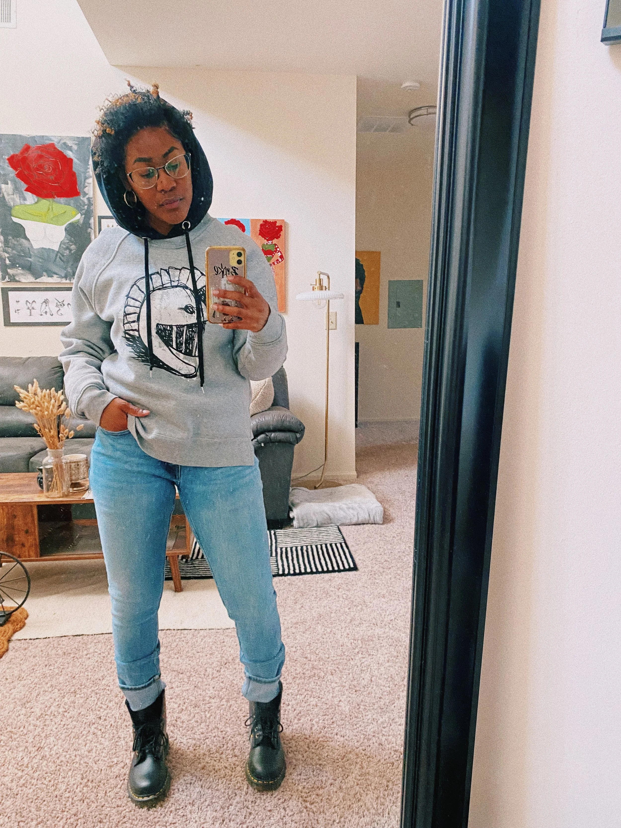 Denim Banana RepublicSweater Burberry (Over a helmut lang hoodie) Boots Doc Martens