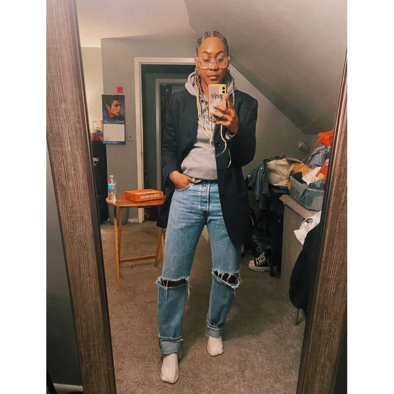 More recently, I was introduced to a brand that I now love: Moussy/Moussy Vintage (shout out to Amanda, @amandamurray). I purchased mine from Nordstrom. The style I found fits like true vintage Levi’s, too! They were a bit on the pricier side, but you gotta pay that price for the quality, babe. The style name is: moussy vintage, chateau straight leg raw edge (below) and I love the raw hem and pocket detail in the back. They are linked below.