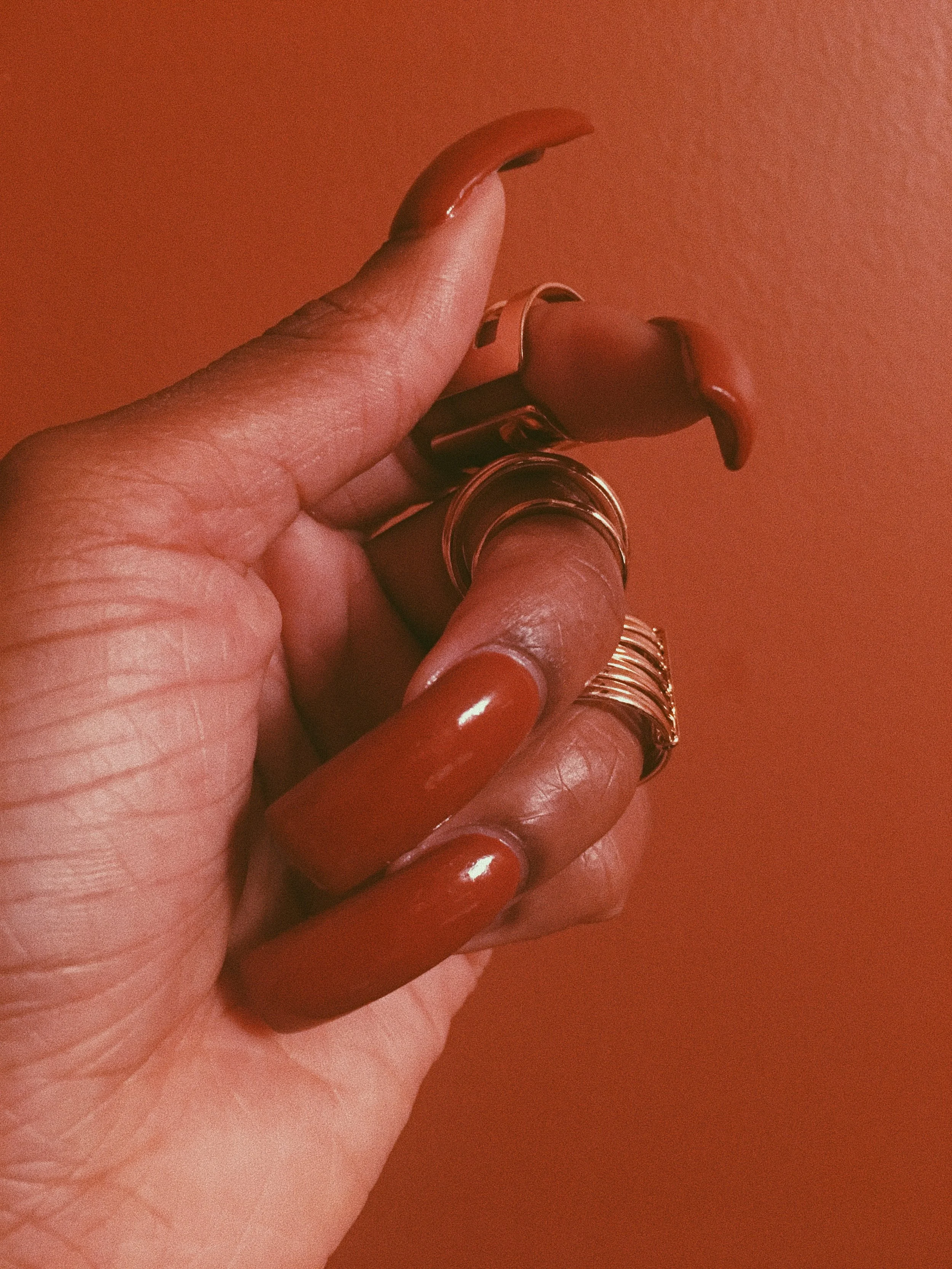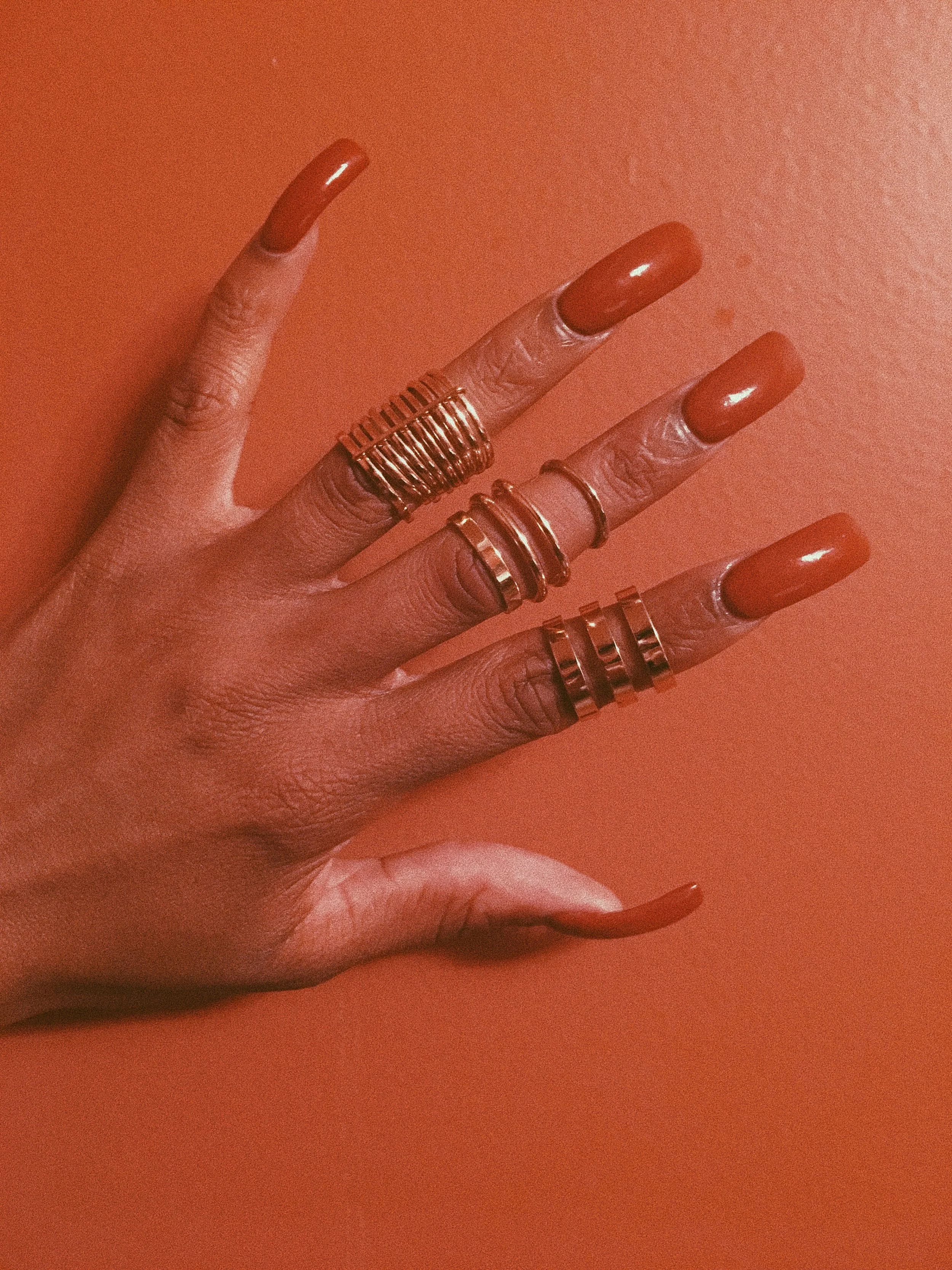 My nails, photo taken in my bathroom. Rings from Forever 21. 2017